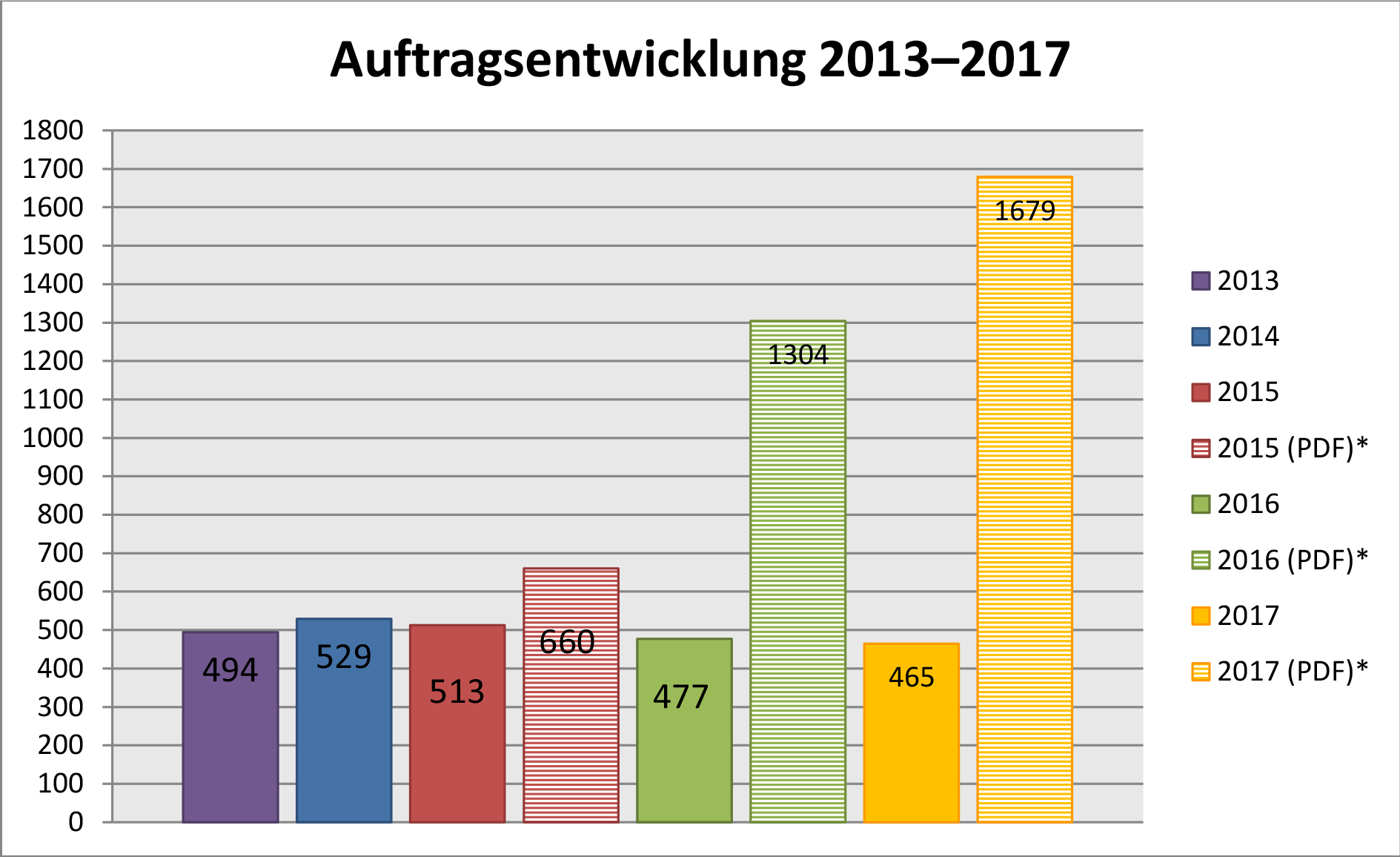 Die Anforderung von PDF-Dateien hat im Jahr 2017 den Stand von 1.679 PDFDateien erreicht.
