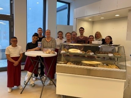 Am 26. 09. war es dann soweit. Es wurden morgens schnell noch die Hefeschnecken gebacken und dann das Auto gepackt. Alles wurde mit dem Bully in die Osterstraße gebracht und mit vielen Händen und vereinten Kräften ausgeladen. Der große Veranstaltungsraum wurde in ein Café umgestaltet. Hier konnten wir die Gäste vom Kuchenangebot sehr begeistern. Alle Gäste bedankten sich nochmals für unser Engagement.