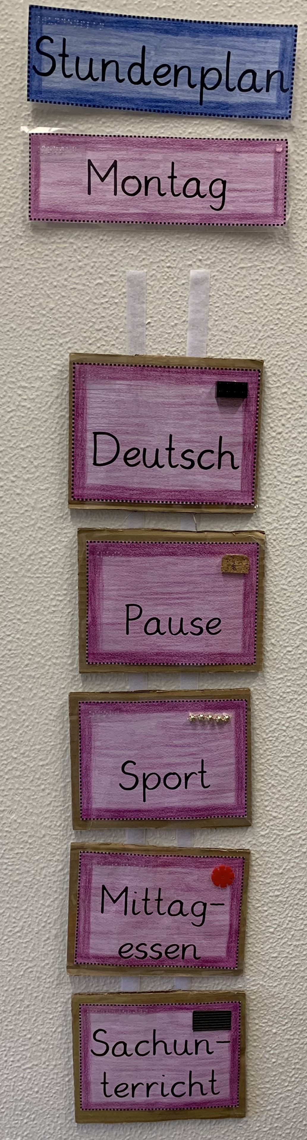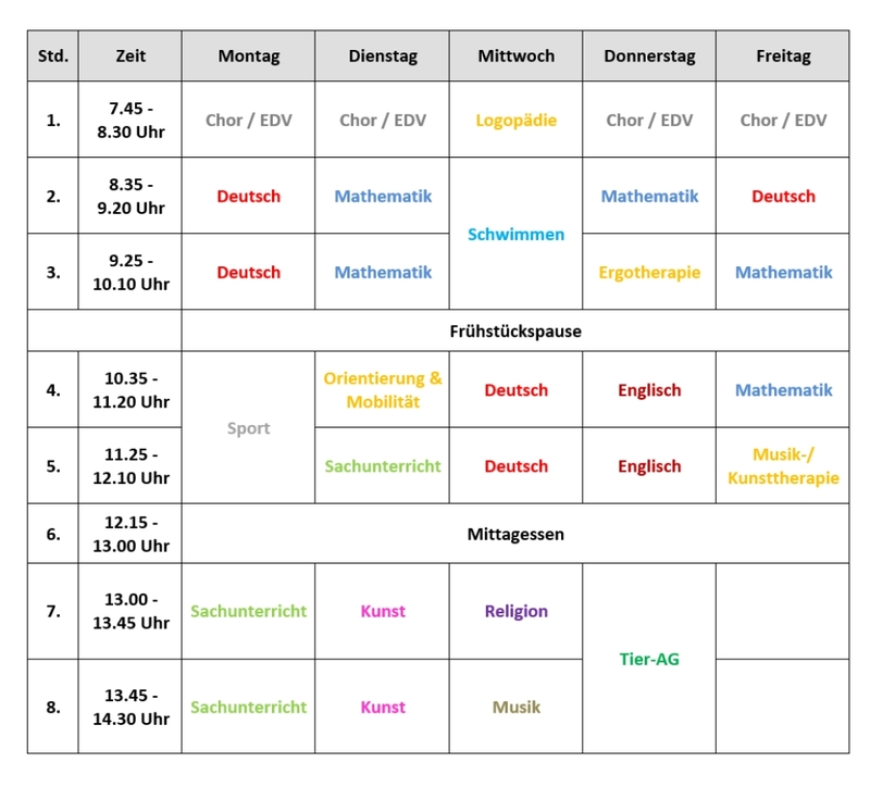 Der Stundenplan umfasst die Fächer der Stundentafel für die Grundschule.