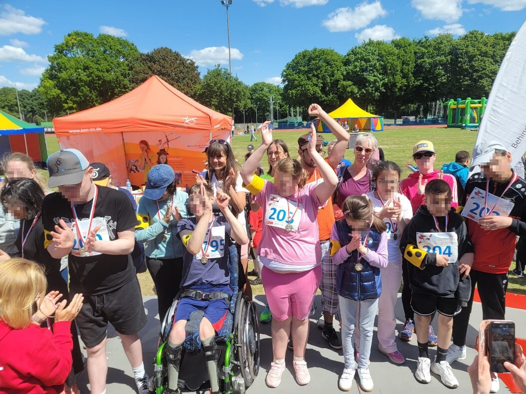 Gespannt und auch ein bisschen aufgeregt fuhren zwölf Schülerinnen und Schüler der Förderschule Sehen (Blinde) und Geistige Entwicklung am 15. Mai 2025 zum Erika-Fisch-Stadion in Hannover, um am inklusiven Sportfest des Behinderten-Sportverbandes Niedersachsen (BSN) teilzunehmen.