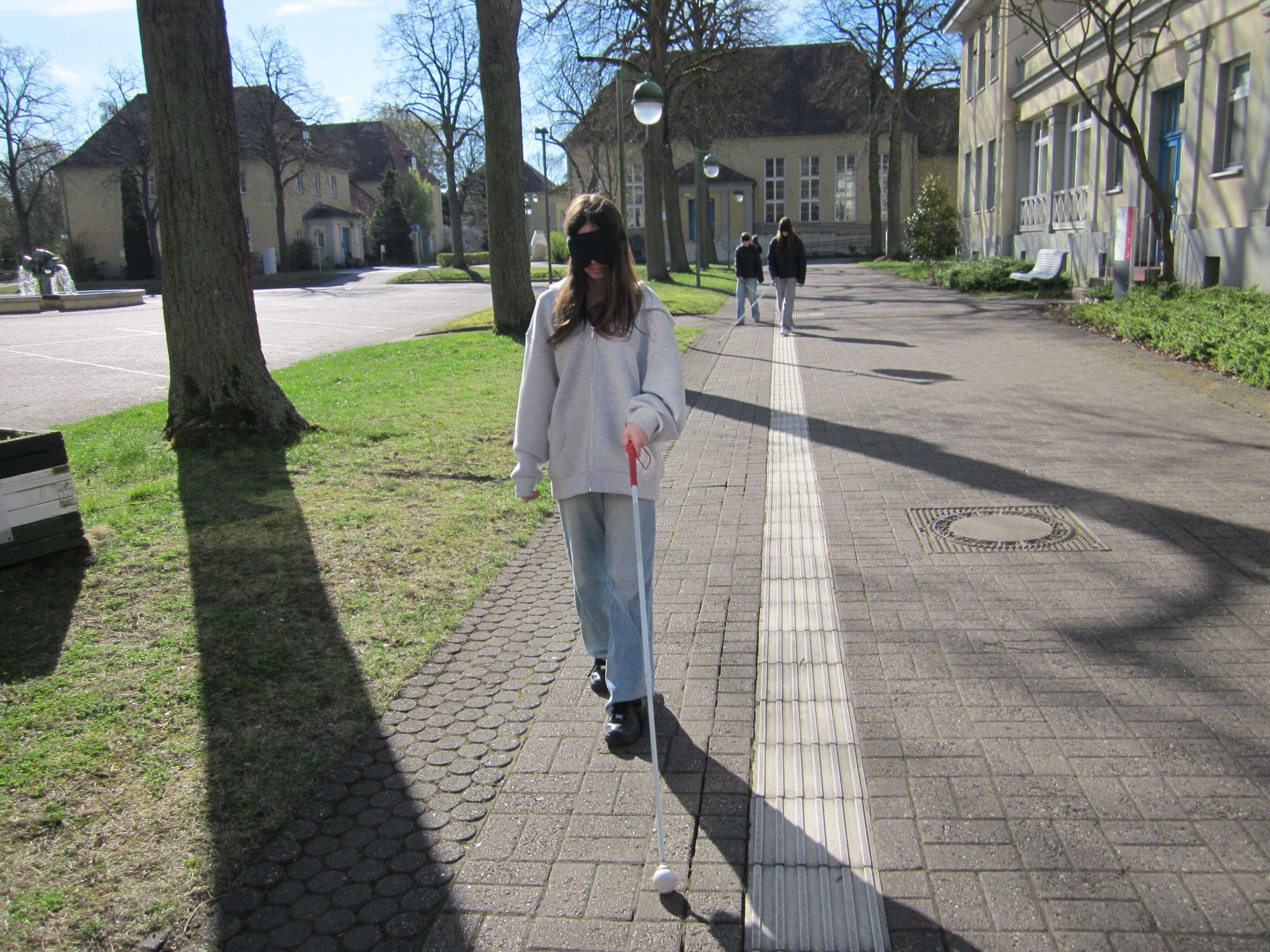 Am 03.04.2025 war Zukunftstag und ich war zusammen mit einer Freundin im Landesbildungszentrum für Blinde (LBZB). Es waren auch noch andere Schüler:innen da. Wir haben uns alle im Lehrerzimmer getroffen und sind offiziell begrüßt worden. Wir haben ein Video über die Einrichtung und die Schule geschaut und darüber erfahren, wie es ist, blind zu sein.