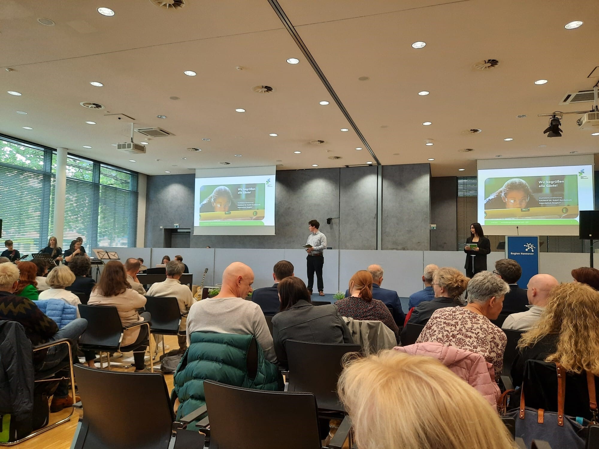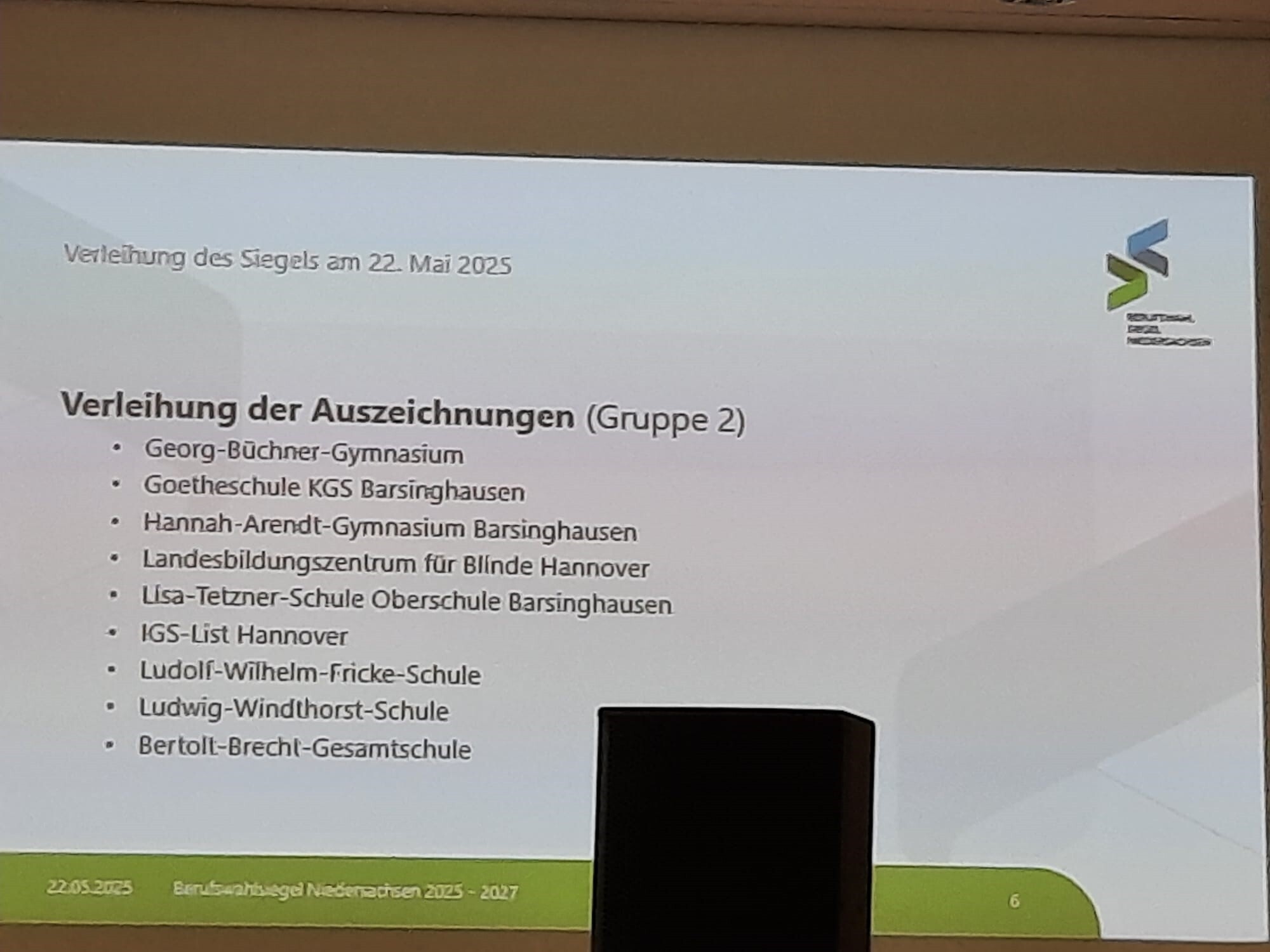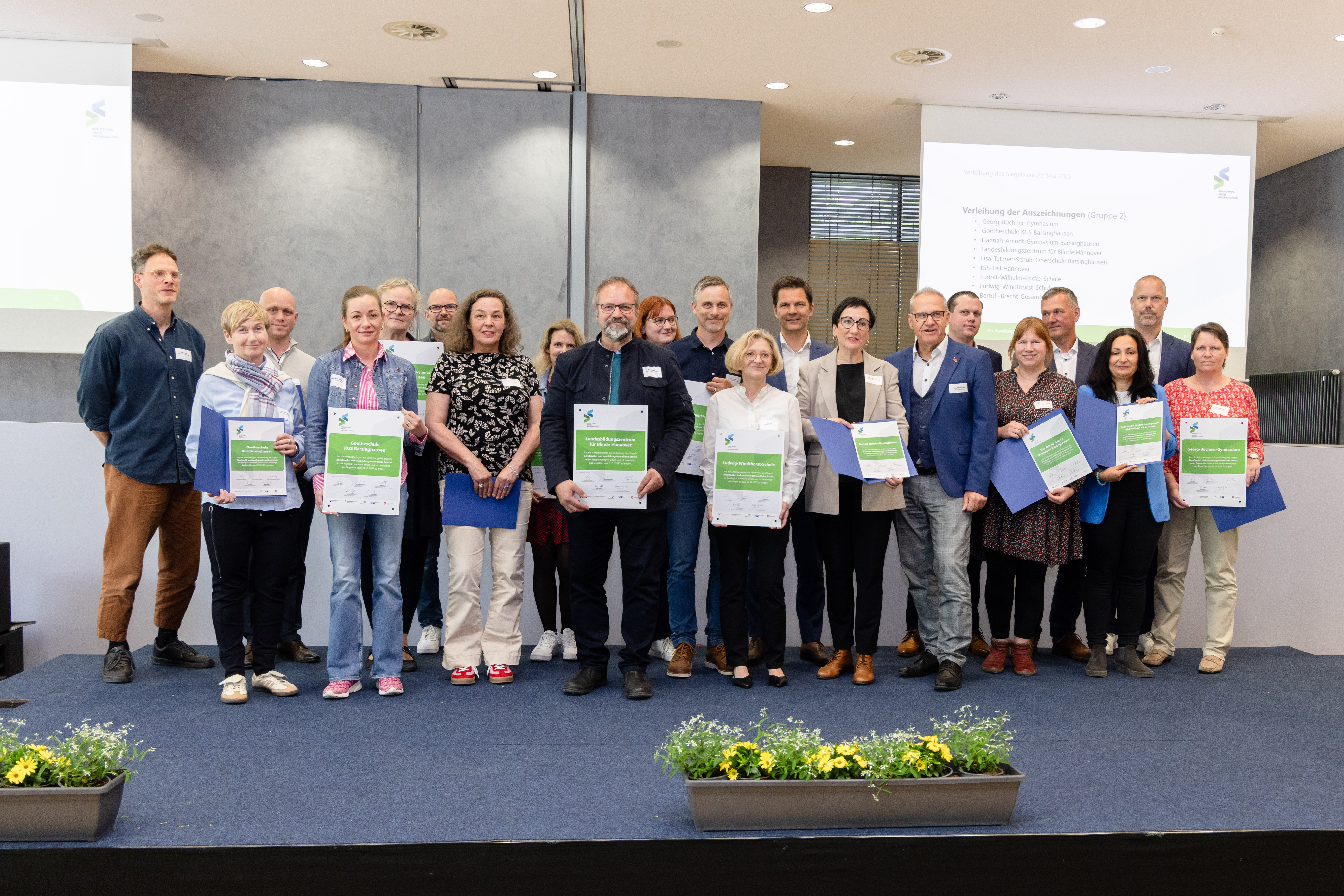 Das Landesbildungszentrum für Blinde war eine der 28 Schulen aus der gesamten Region Hannover, die am 22.05.2025 in einem sehr festlichen Rahmen ihre Urkunden durch den Regionspräsidenten Steffen Krach und den stellvertretenden Leiter des Regionalen Landesamtes für Schule und Bildung, Herrn Uwe Mensching, überreicht bekamen.