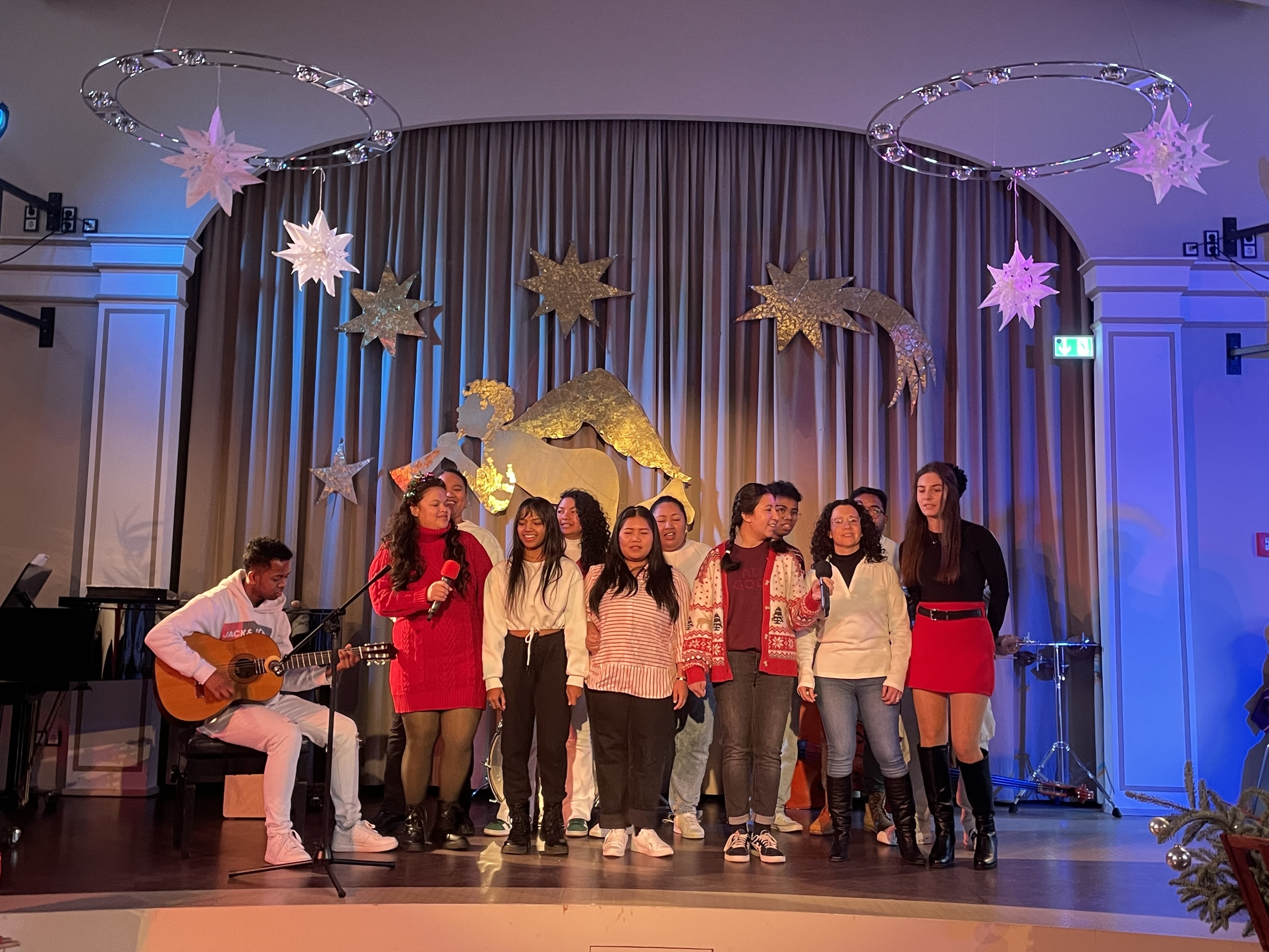 Das stimmungsvollen Ende der Weihnachtsfeier gestalteten unsere Freiwilligendienstleistenden. Sie sangen mit sehr viel Liebe und Power in mehreren Sprachen Feliz Navidad.